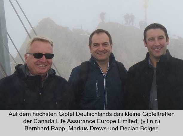 Der höchste Berg – die größten Perspektiven! Kleiner Gipfel auf dem höchsten deutschen Gipfel. Die Spitze der Canada Life Assurance Europe Limited (www.canadalife.de), die das Deutschland Geschäft managt und verantwortet, wählte die Zugspitze für ihren Herbstworkshop aus.