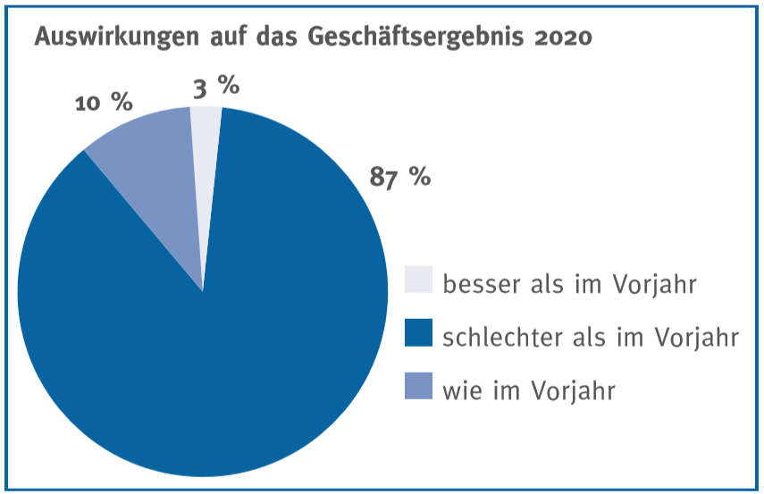 87 Prozent der Teilnehmer sehen ein schlechteres Ergebnis für dieses Geschäftsjahr voraus. Knapp 3 Prozent geben an, ein besseres Ergebnis zu erreichen und 10 Prozent erwarten immerhin noch einen gleichbleibenden Geschäftserfolg.