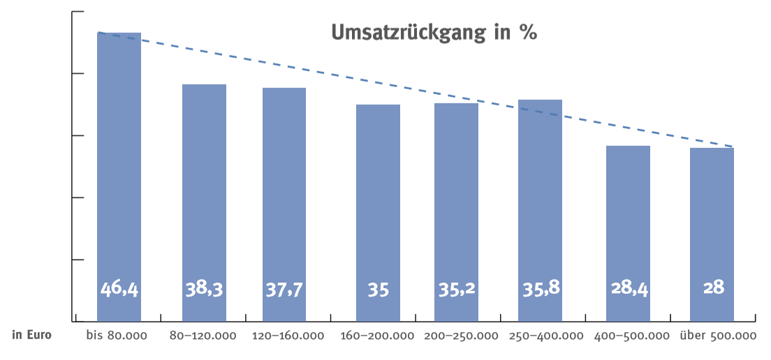Zudem konnte festgestellt werden, dass Betriebe mit geringeren Gesamteinnahmen tendenziell größere Umsatzrückgänge als Betriebe mit höheren Gesamteinnahmen haben.