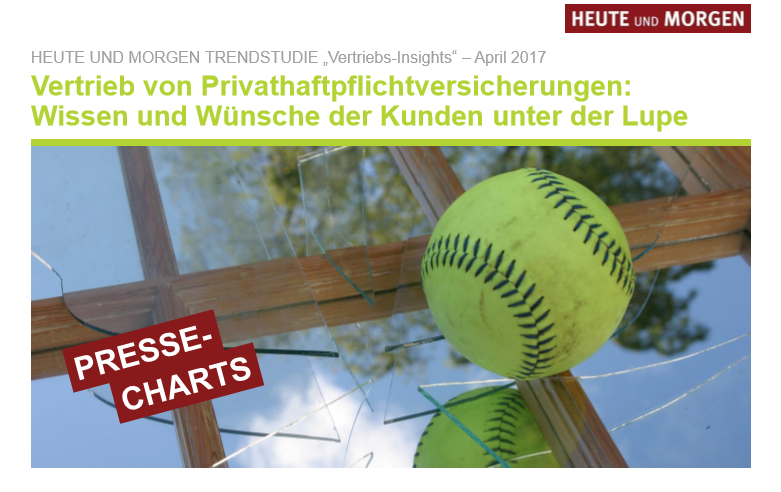 Die komplette, rund 100-seitige Trendstudie “Vertrieb von Privathaftpflicht-Versicherungen: Wissen und Wünsche der Kunden unter der Lupe“ wurden 1.000 Bundesbürger zwischen 18 und 65 Jahren, die eine PHV besitzen, repräsentativ befragt. Die Studie mit umfangreichen Detailergebnissen zum spartenspezifischen Versicherungsverhalten, aktuellen Entwicklungen, ausführlichen soziodemographischen Differenzierungen sowie zahlreichen Empfehlungen für Produktgeber und Vertrieb – kann direkt über Heute und Morgen bezogen werden. (-el / www.bocquel-news.de)