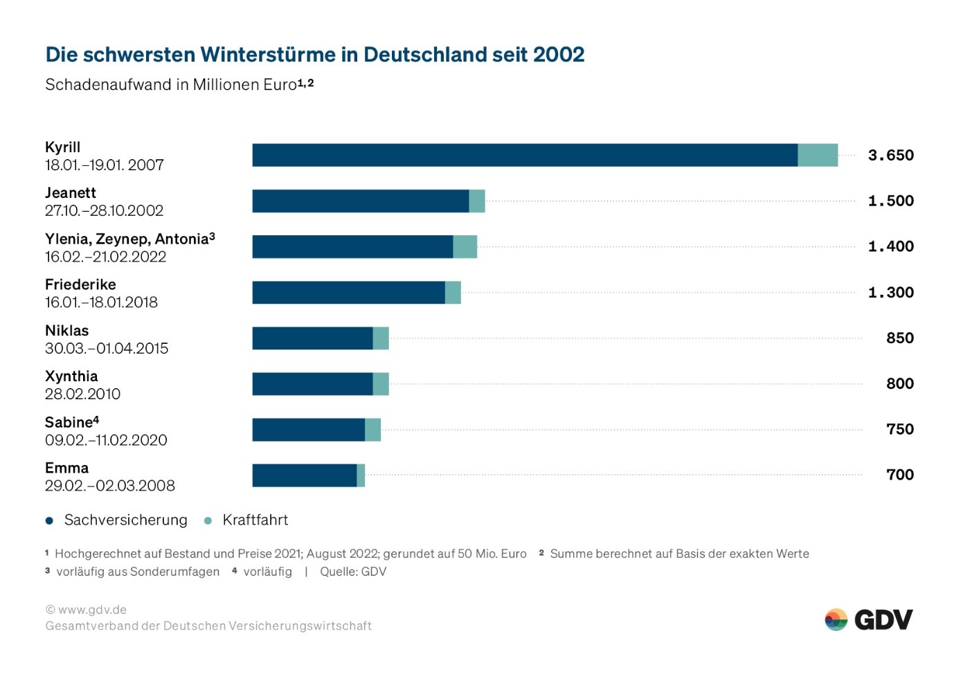 Es wird geschätzt, dass der Sturm ‚Bernd‘ im Jahr 2021 in weiten Teilen Westdeutschlands, Ostbelgiens und der Niederlande Überschwemmungsschäden in Höhe von über 40 Milliarden US-Dollar verursacht hat. Für das 3. Quartal 2021 meldete der globale Rückversicherungsriese Munich Re Schäden von rund 600 Millionen Euro.