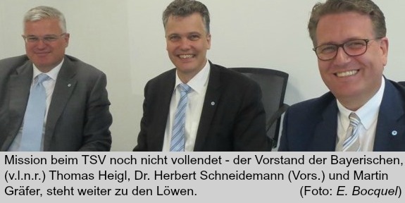 1. Juni 2017 - Heute sehr viel Persönliches: Die Bayerische steht zu dem Absteiger TSV 1860 München. Außerdem verabschiedet sich ein frischgebackener Eck-Rentner in den Ruhestand. Außerdem gibt es Neues aus den Vorständen der Versicherungs-kammer Bayern und der VIG Vienna Insurance Group.