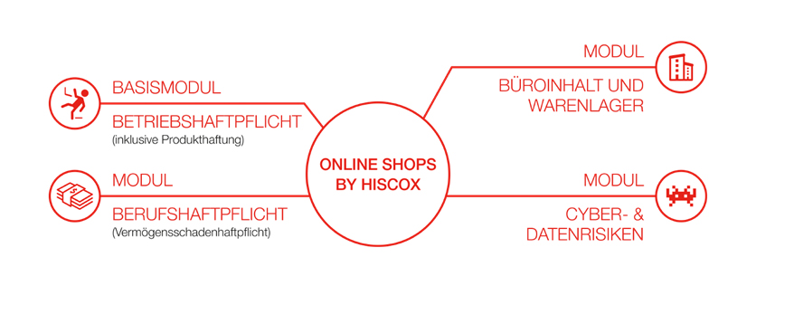 Hiscox habe deshalb eine speziell auf Onlineshops zugeschnittene modulare Versicherungslösung entwickelt, welche die gängigen Branchenrisiken absichere (siehe bocquel-news: „Modul-Versicherungsschutz für kleine Online-Shops“). „Online Shops by Hiscox“ sei die erste anpassbare Allround-Police für kleine und mittlere Online-Shops auf dem deutschen Markt. Das Basismodul ist eine Betriebshaftpflichtversicherung mit integrierter Produkthaftung. Dieses könne nach individuellem Bedarf um drei weitere Module ergänzt werden: eine Berufshaftpflicht mit Vermögensschadenhaftpflicht, eine Versicherung für Cyber- und Datenrisiken und eine Büroinhalts- und Warenlagerversicherung.