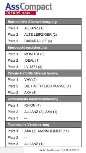 Die Vertriebsstimmung im zweiten Quartal des Jahres 2018 ist bei den Vermittlern hierzulande deutlich gesunken; das zeigt die aktuelle Trends-Studie des Fachmagazins AssCompact (www.asscompact.de). Nicht verwunderlich, heißt es, denn die Rahmenbedingungen mit Niedrigzins und Regularien seien nicht gerade einfach. Gleichzeitig wurden erneut Maklers Liebine unter den Versicherern abgefragt. Die Ergebnisse lesen Sie in der nebenstehenden Tabelle (zum Vergrößern - bitte anklicken).
