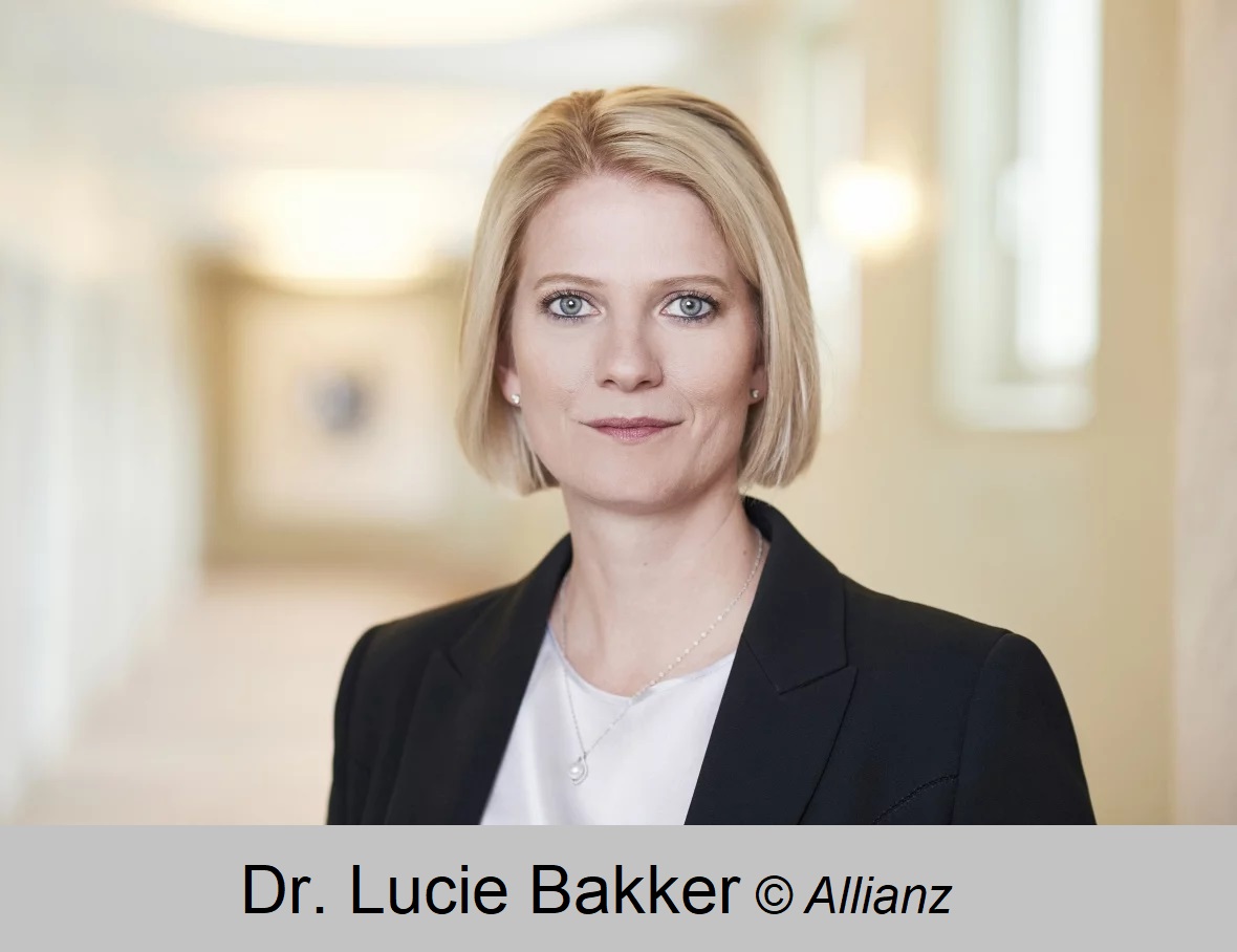 Dr. Lucie Bakker ist bereits seit 2013 bei der Allianz (www.allianz.de), seit Januar 2020 leitet sie das Büro des Vorstandsvorsitzenden der Allianz SE, Oliver Bäte. Die promovierte Politikwissenschaftlerin war zuvor bei der Allianz Private Krankenversicherungs-AG (APKV) als Fachbereichsleiterin Leistungs- und Gesundheitsmanagement sowie als Abteilungsleiterin Leistungsmanagement tätig. Bevor Dr. Bakker zur Allianz kam, arbeitete sie mehr als sechs Jahre als Projektleiterin in der Strategieberatung mit dem Schwerpunkt Versicherung und öffentlicher Sektor.